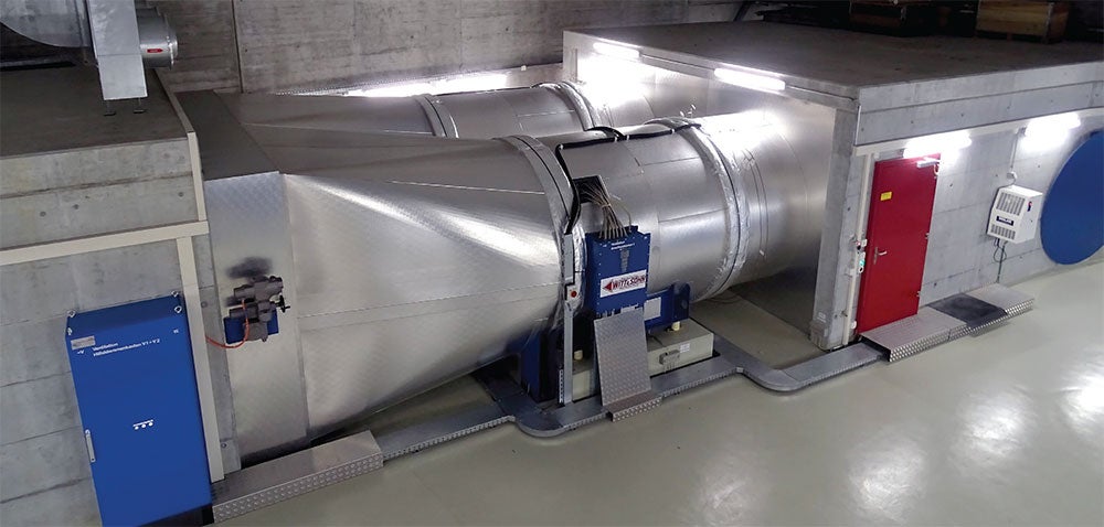 Two axial fans discharge the smoke through a vertical outlet. The axial fans have a 2m-diameter and each has nominal power of 260kW. Four jet fans are installed in a 400m-long tunnel section at the southern portal. This section is not equipped for smoke extraction. The jet fans are controlled to switch on and off based on the measured airflow in the tunnel. In normal operation, the extraction system is used as a longitudinal ventilation with midpoint extraction. The daily traffic volume is about 11,000 vehicles per day with 3.5% heavy goods vehicles. Traffic is increasing as the connection allows residents to commute from the rural area to the city of Lucerne in the north.