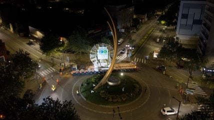 The 10.11m-diameter cutterhead, weighing nearly 150 tonnes, was transported vertically and in a single piece. The special convoy travelled at 3km/h under a security escort between the Ponts-Jumeaux and La Vache Gare – Le Grand Marché areas.